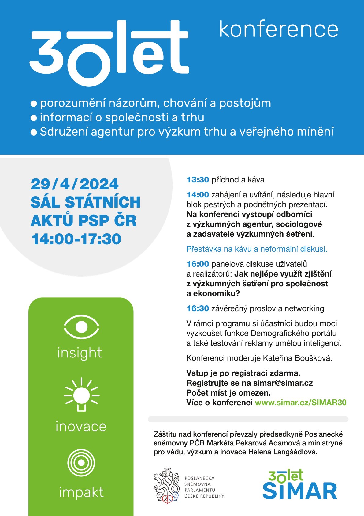 29. dubna 2024 pořádáme v PSP ČR konferenci se špičkovými ukázkami výzkumů, které mají přímý efekt na rozhodování ve společnosti a ekonomice.